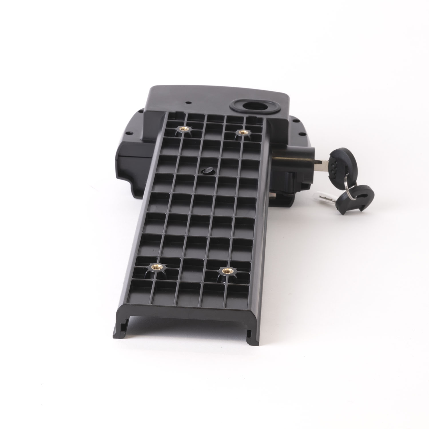 BESCHREIBUNG: Original Phylion-Batterieschlitten zur Befestigung der Phylion SF-03 Fahrradbatterie (Joycube) in einem geeigneten Träger. Der Batterieschlitten ist mit dem Steuergerät ausgestattet und wird komplett mit einem Batterieschloss mit 2 Schlüsseln zum Verriegeln der Batterie im Schlitten geliefert. Der Schlitten selbst wird über 5 Befestigungspunkte auf dem Träger montiert. SPEZIFIKATIONEN: