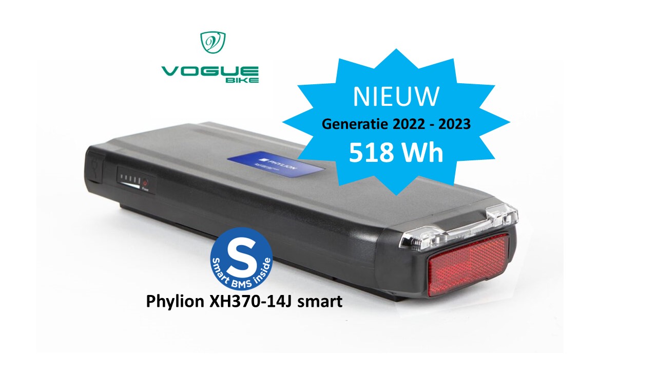 Phylion XH370 mit intelligentem BMS für Vogue, Ausgabe 2024. Modell EBG370-140H1S24 mit 518 Wh. Ersetzt die XH370-13J, -12J & 10J inkl. LED. Kostenloses Ladegerät.