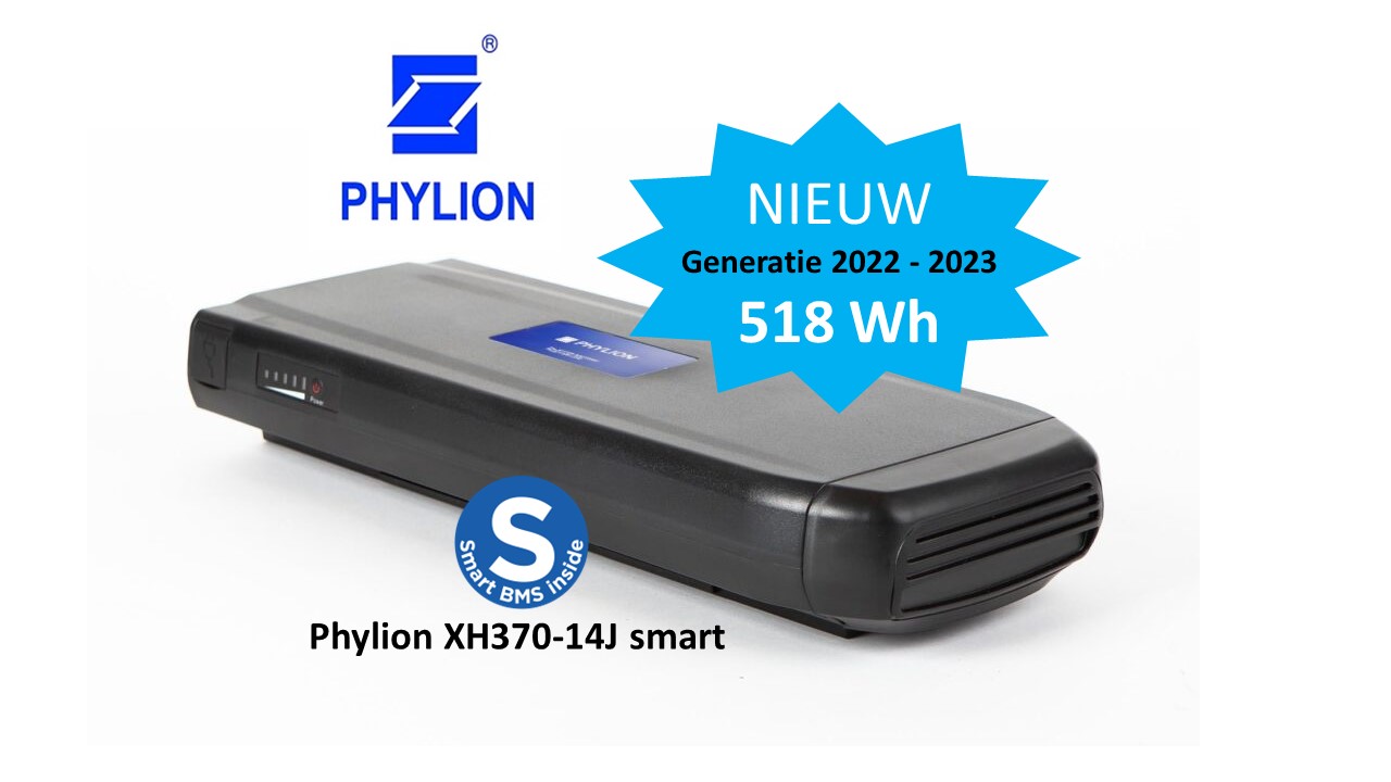 Phylion XH370 mit smart BMS edition 2024, Modell EBG370-140H1S24 mit 518 Wh. Ersetzt die XH370-13J, -12J & 10J ohne. LED. Kostenloses Ladegerät.