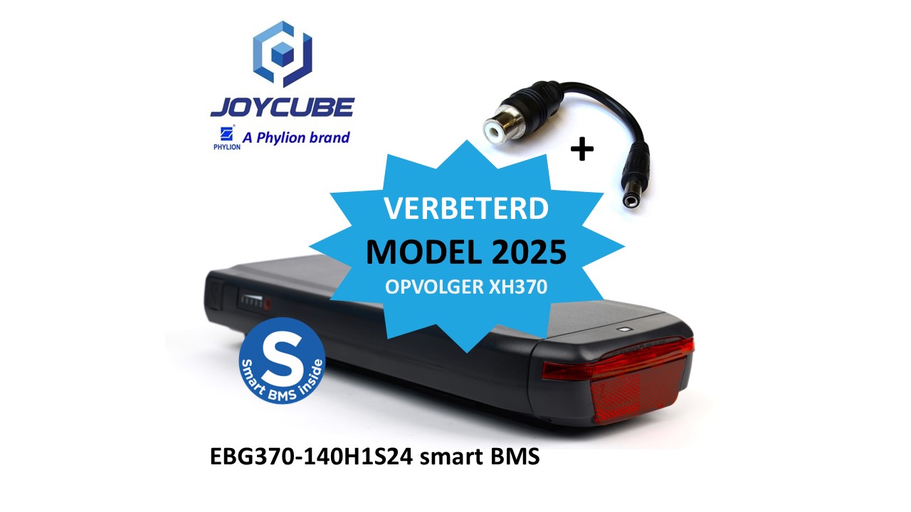 Die Produktion des bekannten XH370 endete Ende 2022, nach mehr als 11 Jahren. Das Modell wurde durch das mehrfach verbesserte EBG370 ersetzt. Das bekannte Modell ist jedoch gleich geblieben. Entdecken Sie das Phylion Wall-E-S Modell 2024 (EBG370-140H1S24) mit intelligentem BMS (Batteriemanagementsystem) und 518 Wh (37V, 14 Ah) für Vogue, Veloci und andere, Rivel, Altec, Hollandia, Pelikaan, Keiler und viele andere. Dieser aktualisierte und verbesserte Akku ist vollständig austauschbar mit den vorherigen XH370-Modellen mit LED-Rücklicht, einschließlich der XH370-13J, -14J, -12J und -10J, und ersetzt diese.