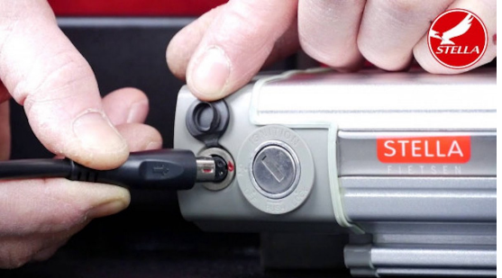 Original Sans Li-ION Batterieladegerät mit 5-poligem Metallstecker (rund) für Typ 2 Batterien (36 Volt) von Stella. Dieses Ladegerät ist nur für Batterien mit rundem Ladekontakt geeignet und nicht für die Variante mit 5-poligem Trapezkontakt!