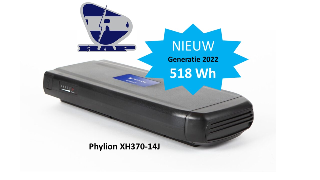 Phylion XH370-14J bicycle battery for RAP (518 Wh). Replaces models 10J, 11J, 12J & 13J no LED taillight. NEW STOCK !