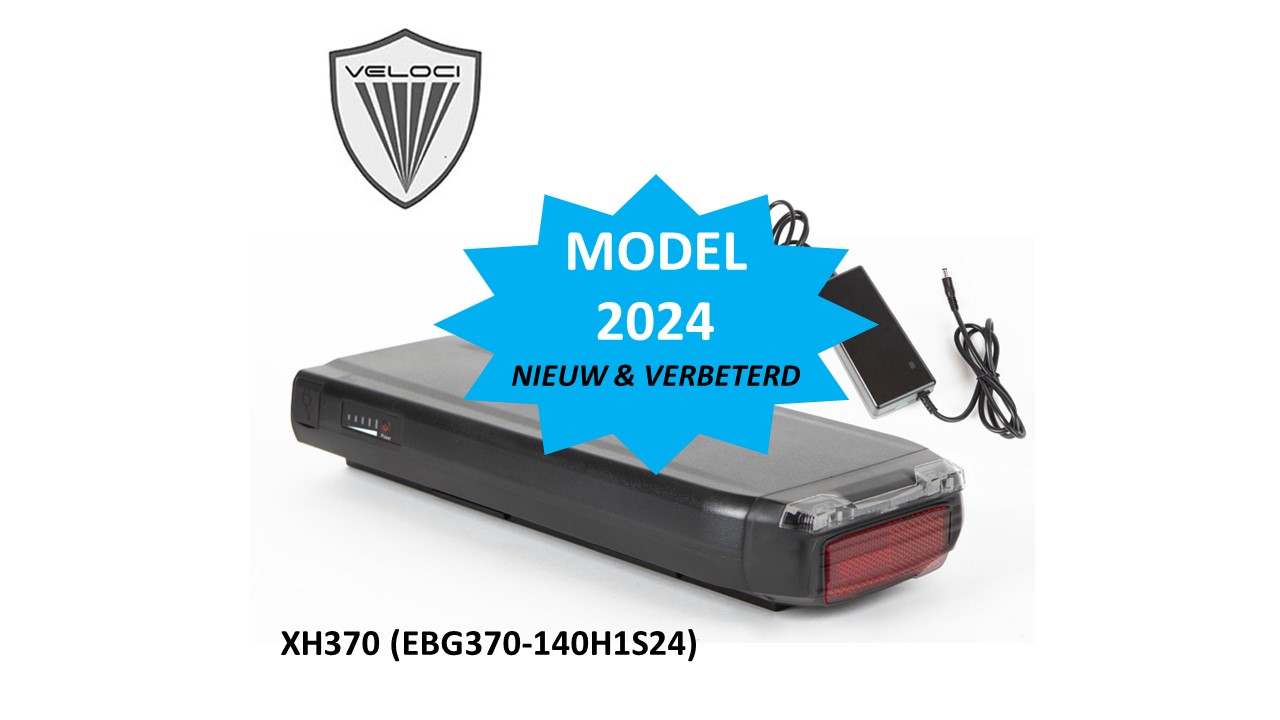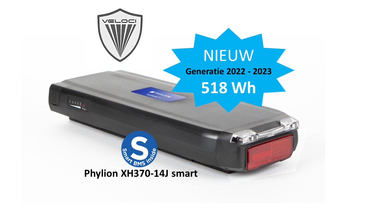 Phylion XH370 with standard BMS for Veloci, 2024 edition (EBG370) with 518 WH. Replaces the XH370-13J, -12J & 10J incl. LED. Now with free charger.