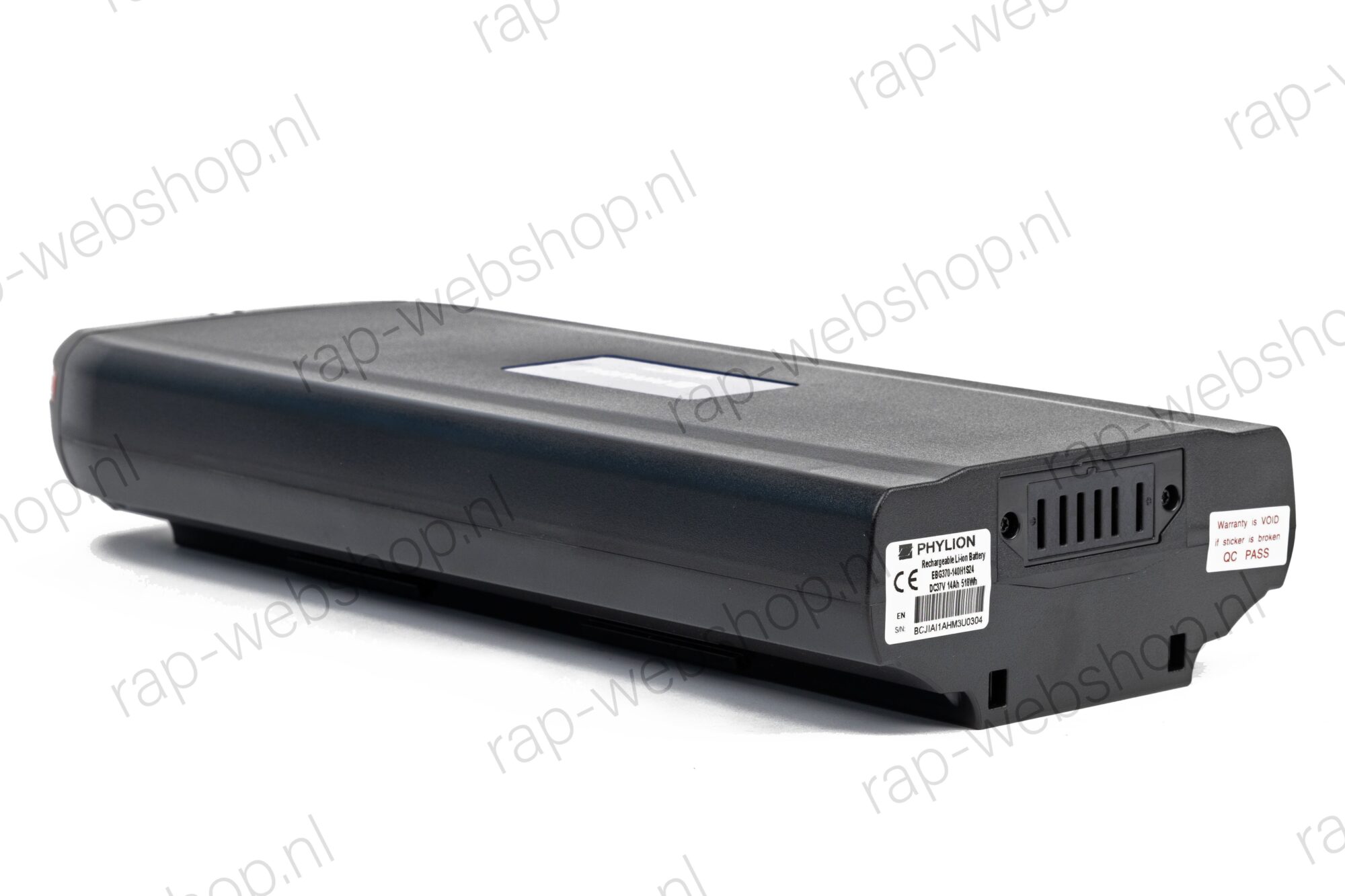Discover the Phylion Wall-E-S, model 2024 (EBG370-140H1S24), with standard BMS (battery management system) for Hollandia & Pelican. This upgraded- & improved battery is fully interchangeable with and replaces previous XH370 models, such as the XH370-13J, -14J, -12J and -10J exc.l. LED taillight. Suitable for models Fronta, Mobilit-E, Optima, E-street, Mimo &, Evado from Hollandia and Advanced from Pelican, among others.