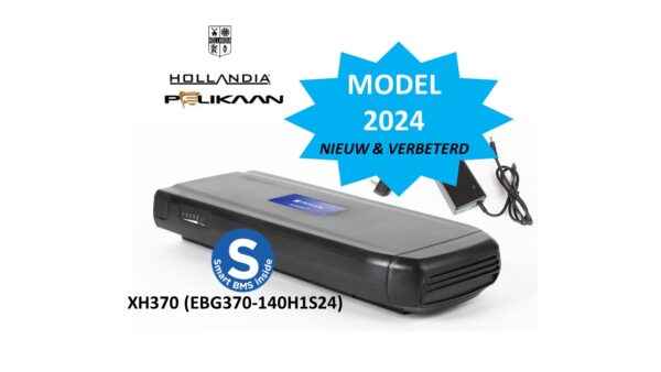 Phylion XH370 model 2024. Smart battery Hollandia & Pelican. EBG370-140H1S24, 518 Wh (37V, 14 Ah). Replaces the XH370-13J (-14J), -12J & -10J excl. LED. Now incl. FREE CHARGER! NEW PRODUCTION.