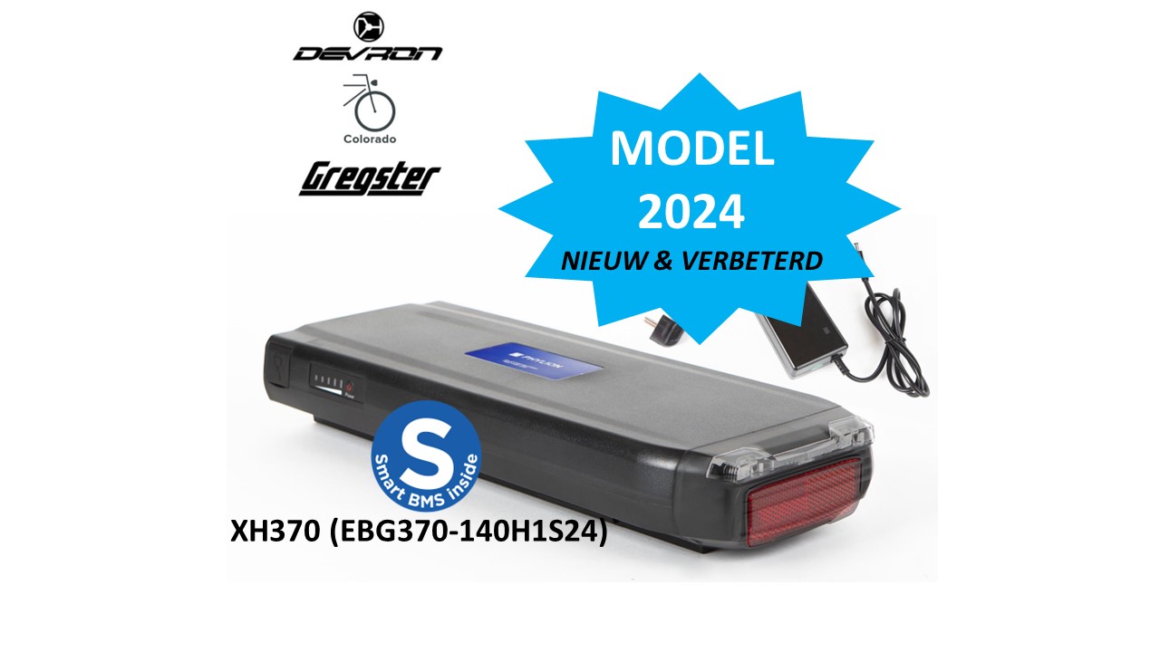 Phylion XH370 with smart BMS for Devron, Gregster & Colorado, 2024 edition. Model EBG370-140H1S24 with 518 Wh. Replaces the XH370-13J, -12J & 10J incl. LED. Free charger.