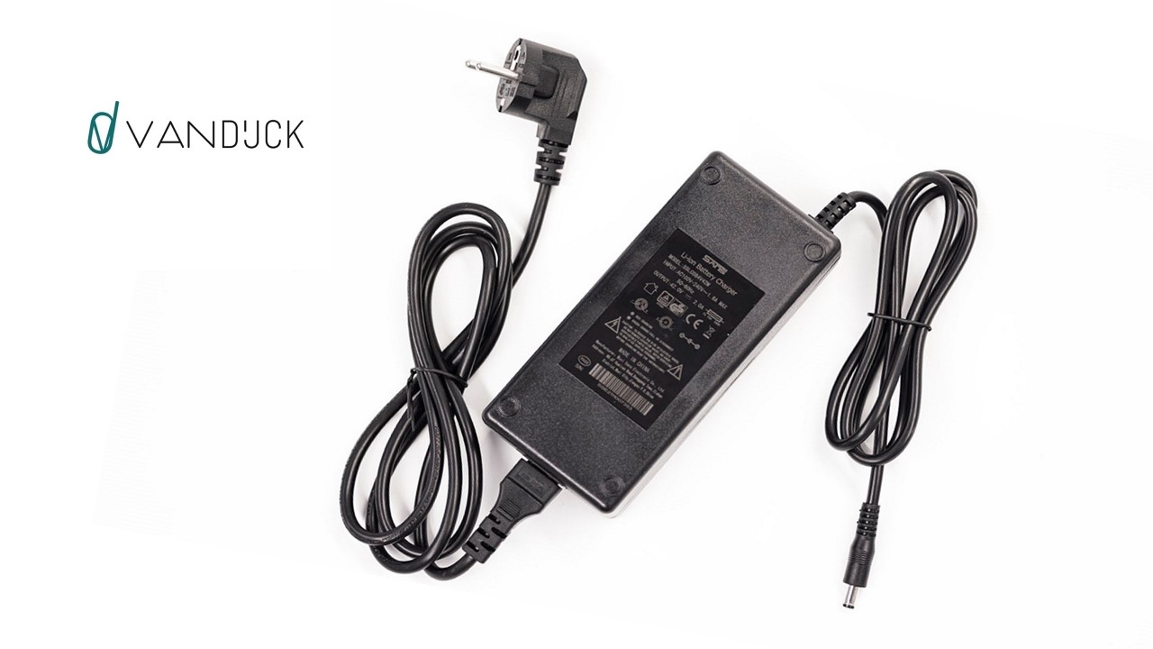 Vandijck charger (42V, 2 Ah) with 2-pole 5.5 x 2.1 charging plug for 36 V Li-ION batteries