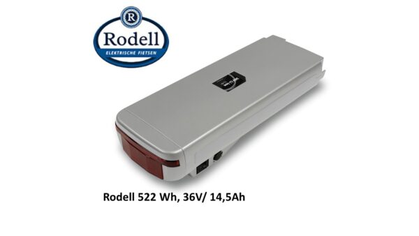 De accu Li-ION fietsaccu voor Rodell met LED achterlicht (schakelbaar via de displaybediening) en ronde, 2-polige aansluiting voor de oplader. De fietsaccu levert 522 Wh aan vermogen bij 36 volt (14,5 Ah) en vervangt de originele accu. Oplader De originele oplader heeft in principe dezelfde stekker en werkt daarmee gewoon op deze vervangende accu. Wenst u toch een extra- of vervangende oplader klik dan hier. Accessoires Naast de oplader is ook de accuslede (met slot) los leverbaar. Garantie Rodell accu De accu wordt geleverd met 24 maanden (fabrieks-) garantie. Gebruik en laden van de accu Een goed gebruik van de accu is cruciaal voor de levensduur en de prestaties van de accu. De volgende uitgangspunten zijn hierbij belangrijk: