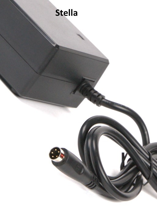 Originele Sans Li-ION acculader met 5-polige metalen stekker (rond) voor type 2 accu’s (36 Volt) van Stella. Deze oplader is enkel geschikt voor accu’s met rond laadcontact en niet voor de variant met 5-polig trapezium contact!