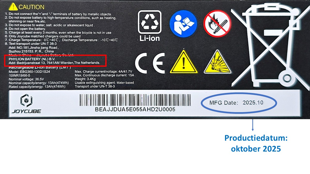 | Voltage & capaciteit | 36,5V – 13,0Ah (474Wh) |